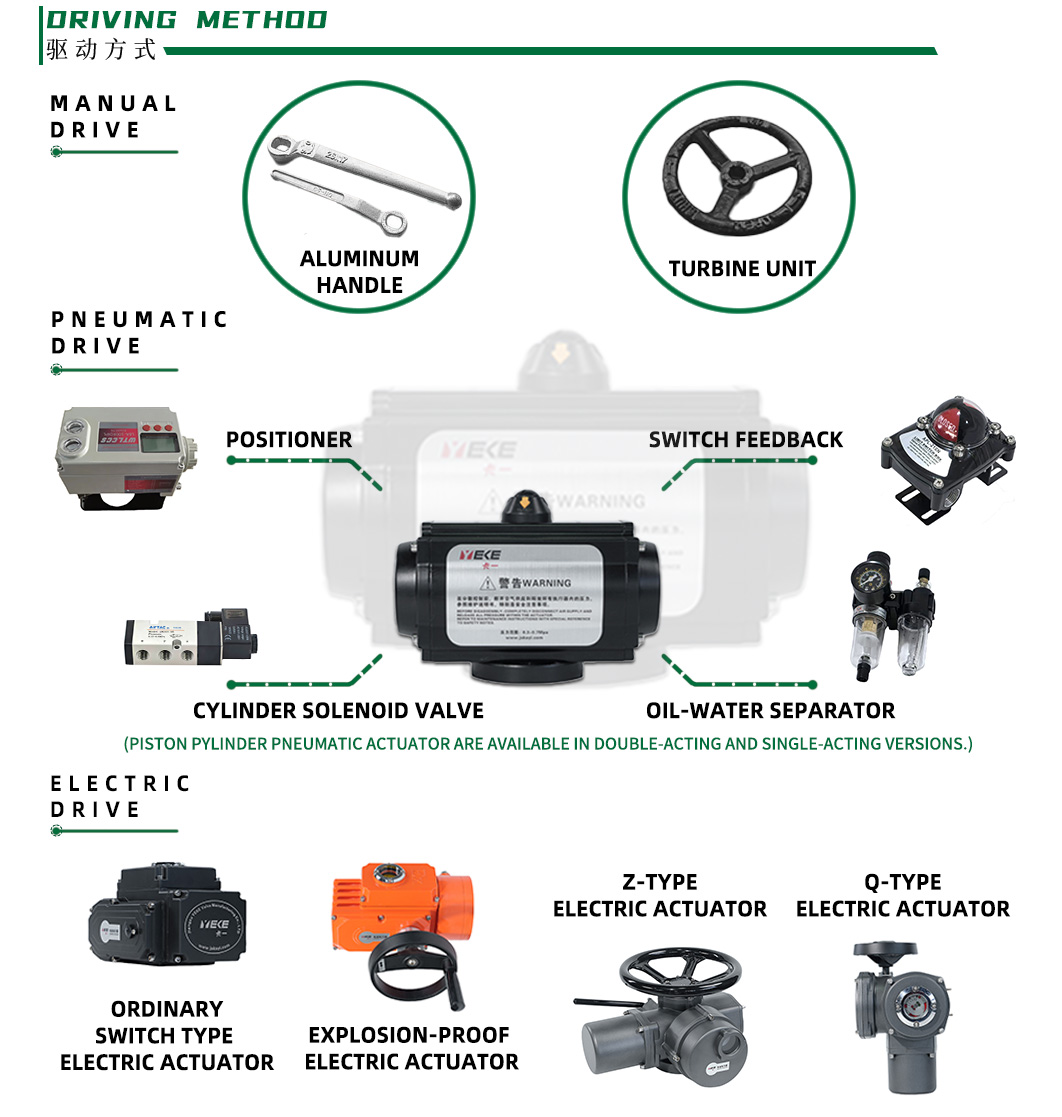 To meet diverse control needs, YEKE provides you with comprehensive drive options: standard handles for manual operation, turbine heads for large-caliber, labor-saving adjustment, as well as precise electric actuators and efficient pneumatic actuators for automated control.
