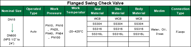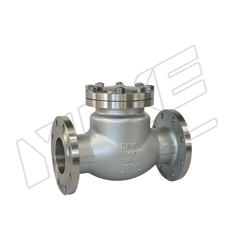 The flanged swing check valve is an automatic valve that relies on the medium's own power to automatically prevent reverse flow. It incorporates a disc (either a disc or gate) that rotates around an axis. This disc opens when the medium flows forward, while it closes automatically under the combined force of its own weight and the counterflowing medium during reverse flow. With its high flow capacity, minimal water hammer, and high reliability, this valve is a key device for protecting pumps, compressors, and pipeline equipment from damage caused by reverse flow.