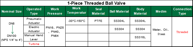 The 1-piece threaded ball valve is designed to provide reliable shutoff and flow control for small to medium-diameter pipelines. The valve body is an integral, integral unit, and opening and closing are achieved by the ball rotating around the valve's centerline. The full-bore desi...